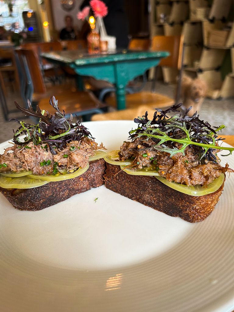 The pulled duck had such deep flavours, I could taste a bit of mustard that gave it the slightest hint of heat. But the sliced green tomatoes did it for me. They gave each bite a bit of sourness and completely balanced out the flavours. Loved it.❤️